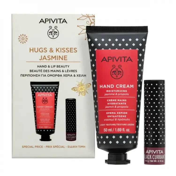 APIVITA Hugs & Kisses Jasmim Creme de Mãos 50ml e Stick Labial Groselha 4,4gr