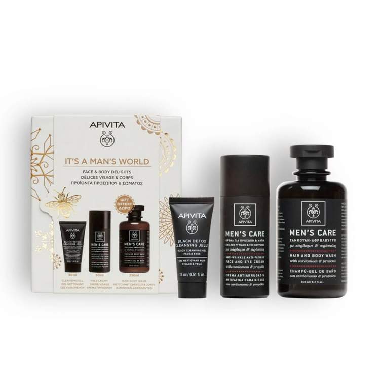 APIVITA Its A Mans World Gel de Limpeza 50ml + Creme Antirrugas 50ml c/Oferta Hair & Body Wash 250ml