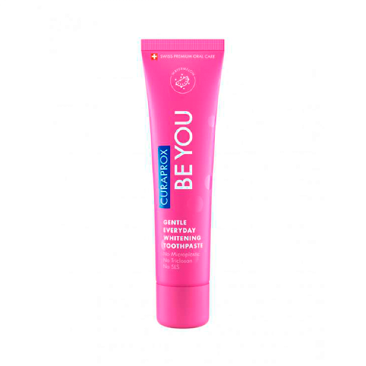 Melancia - Dentífrico com efeito branqueador suave e um sabor e frescura viciantes. A hidroxilapatite e a glucose oxidase, juntamente com os seus ingredientes naturais, asseguram um efeito branqueador enzimático que é suave para os dentes. O xilitol, para além de um sabor doce, fortalece os teus dentes e combate as bactérias.