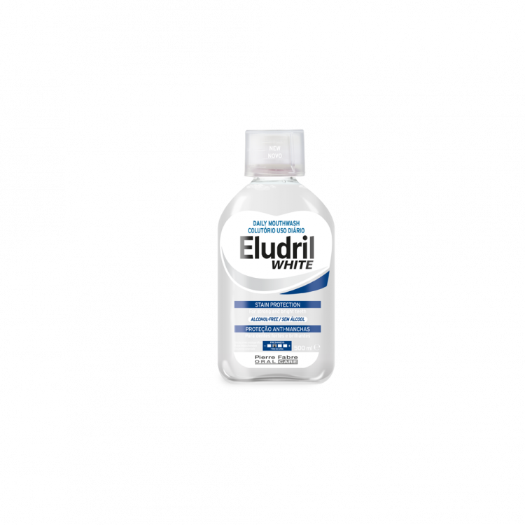ELUDRIL WHITE é um colutório, de uso diário, que pode ser utilizado após a escovagem para dentes mais fortes e mais brancos. Sem álcool, ajuda a limitar a aderência dos agentes colorantes à superfície do dente e ajuda a limitar o desenvolvimento da placa bacteriana. O sabor mentolado promove uma sensação de boca limpa e saudável. Fabricado em França e desenvolvido de uma forma sustentável, o ELUDRIL White está comprometido em reduzir a pegada ecológica, incluindo na embalagem 30% de plástico PET reciclado.
