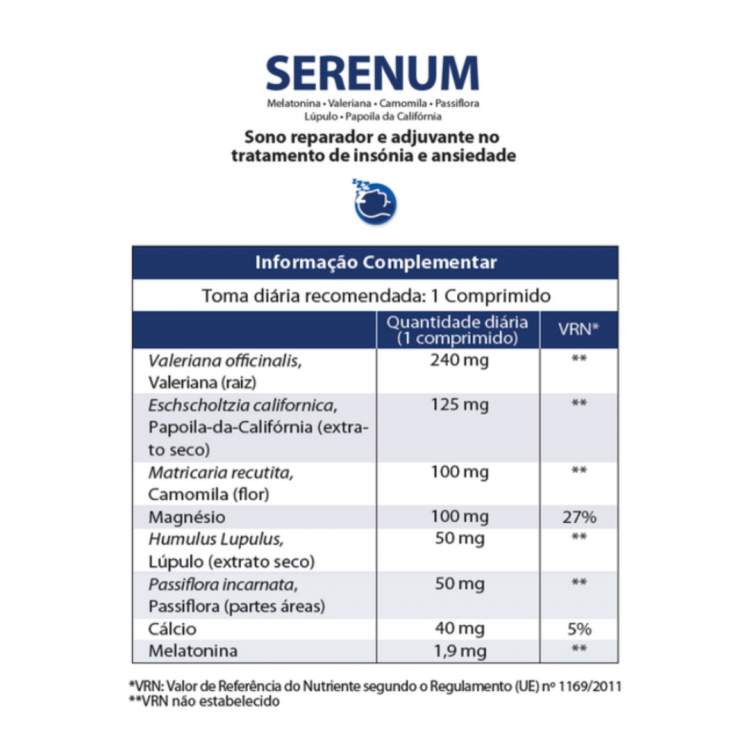 Embalagem com 30 comprimidos. Tomar 1 comprimido antes de deitar.