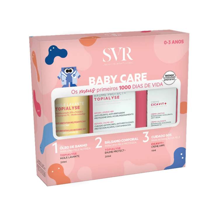 Coffret com o óleo de banho e bálsamo da gama Topialyse ideal para pele seca, muito seca e atópica, com tendência a alergias. Contém ainda o creme reparador e apaziguante Cicavit+ indicado para pele irritada e danificada para aplicação em eritema da fralda, escoriações ou picadas de insetos. Acelera a regeneração da pele para uma cicatrização 7x mais rápida.