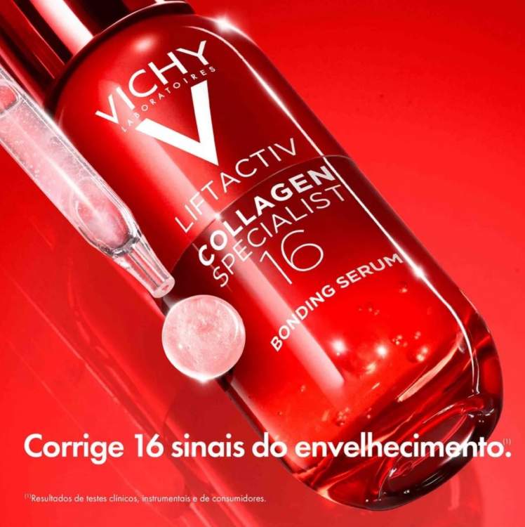 Sérum inovador com tecnologia co-bonding para potenciar o colagénio e corrigir 16 sinais de envelhecimento para uma pele jovem: rugas, linhas finas, firmeza, flexibilidade, contorno, suavidade, textura, tonicidade, densidade, força, reparação, luminosidade, pele macia, elasticidade, hidratação, homogeneidade.