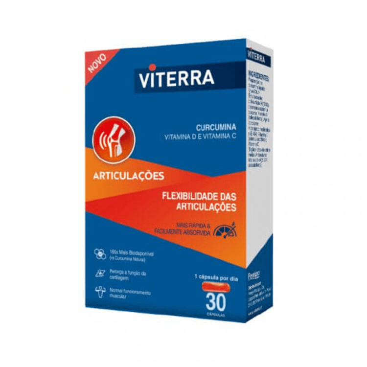 Viterra Articulações é um suplemento alimentar para a manutenção da saúde das suas articulações. Contribui para o normal formação do colagénio para o funcionamento normal das cartilagens, manutenção de ossos normais e para o normal funcionamento muscular. Contém Curcumina, Vitamina D e C.
